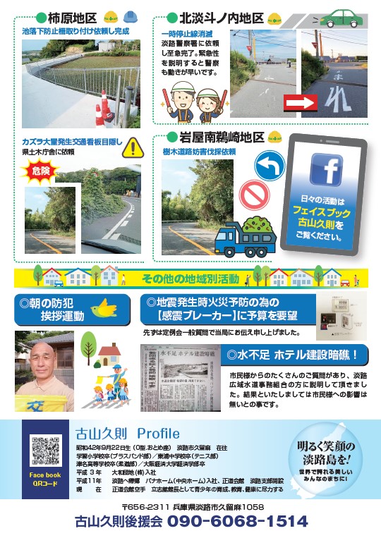「教育と福祉は行政の原点」を信念に、淡路島・淡路市の街角で日々活動する市議会議員、古山久則です。